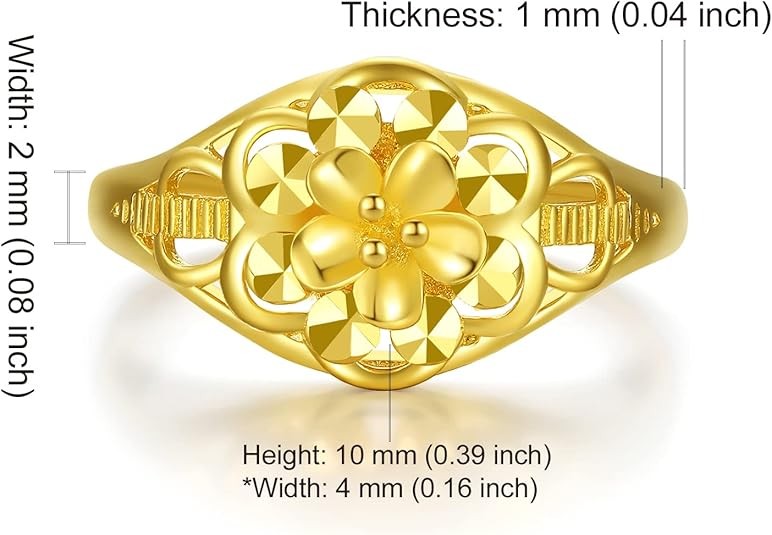• 24K Gold Ring: Crafted from the highest quality 24K gold, Ring Gold weight: 3.5 - 6 g(0.123 - 0.212 oz); 24K gold is the purest form of gold, making it highly valuable and desirable. As a precious metal, gold holds its value over time. The purity of the gold ensures that the ring will maintain its value and a durable use experience.