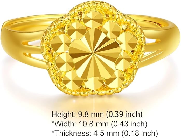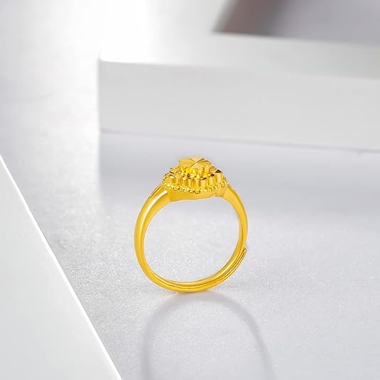 • 24K Gold Ring: Crafted from the highest quality 24K gold, Ring Gold weight: 3.5 - 6 g(0.123 - 0.212 oz); 24K gold is the purest form of gold, making it highly valuable and desirable. As a precious metal, gold holds its value over time. The purity of the gold ensures that the ring will maintain its value and a durable use experience.