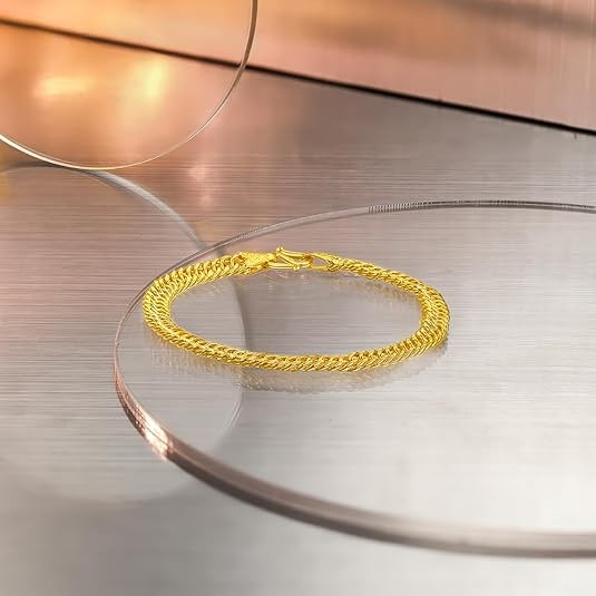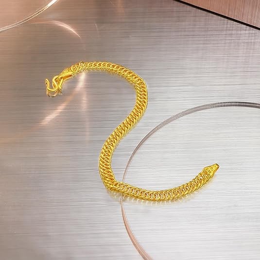 Design Concept: The design concept of this 24K Double Clasp gold bracelet women combines classic and modern elements, showcasing fashion, luxury, and elegance. The delicate gold bracelet is crafted with high-quality 24K gold as the primary material, radiating a brilliant golden glow that exudes a noble temperament and unique taste. The design inspiration for the 24k gold bracelets draws from traditional jewelry styles, showcasing a unique charm in its simple lines and smooth shapes.