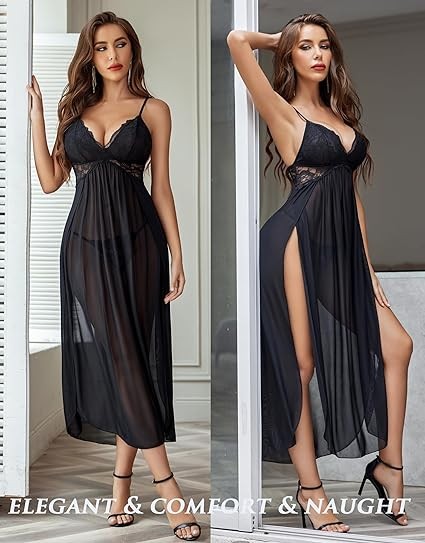 • Material:This Long mesh nightdress is made of floral lace and elastic mesh, high quality fabric is smooth and soft,and breathable, provide you comfortable wearing experience.