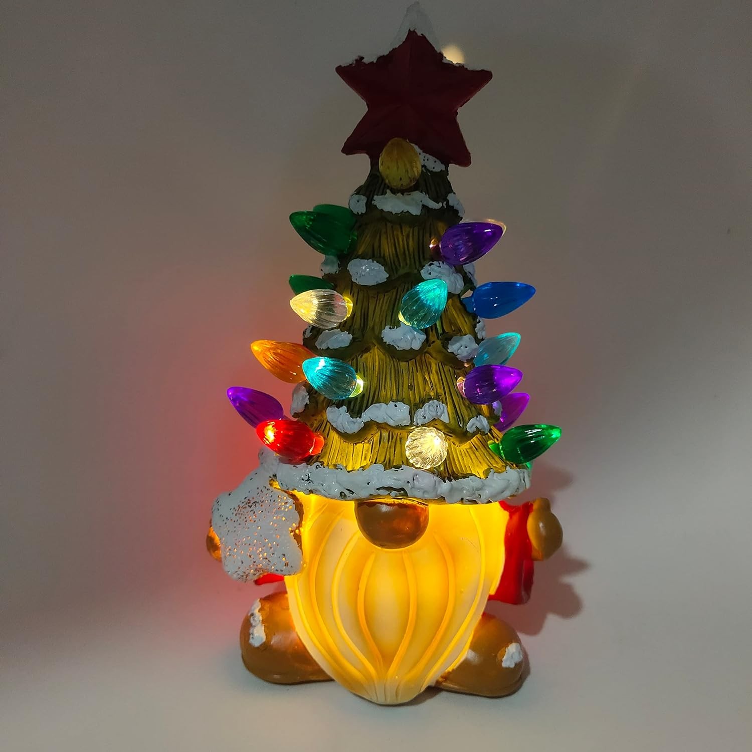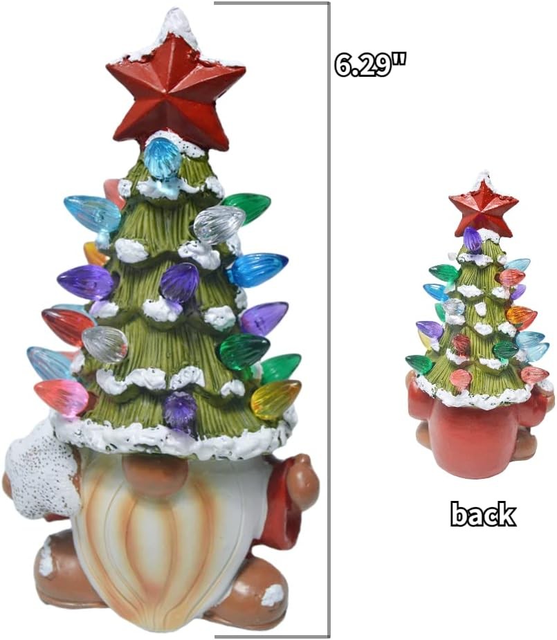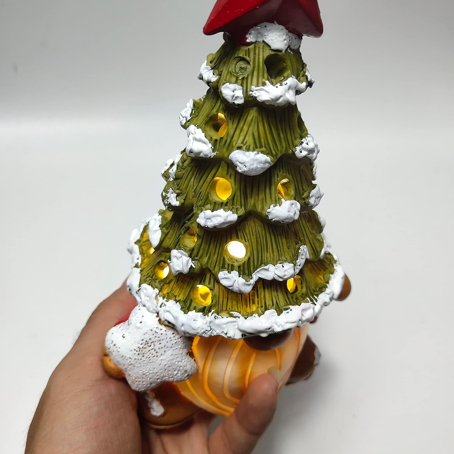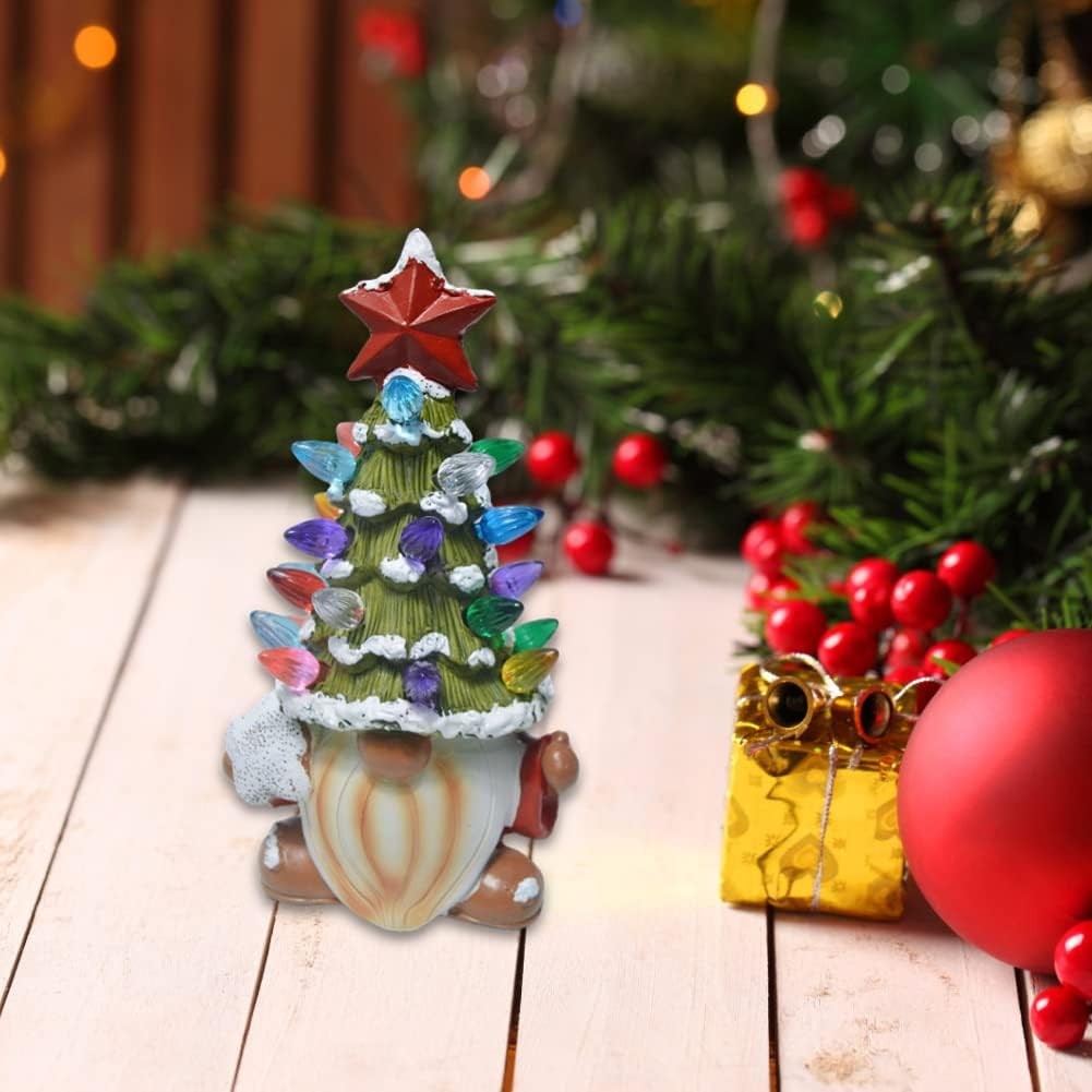 LIGHTED CHRISTMAS TREE ORNAMENT: Christmas tree with lights is 7.5" tall, Christmas tree without lights is 6.3" tall. The desktop Christmas tree is pre-installed with 50 multi-color lights and the classic Christmas gnome image, making the Christmas tree have a Christmas holiday atmosphere, creating a warm and soft holiday atmosphere for you, an indispensable desktop decoration.