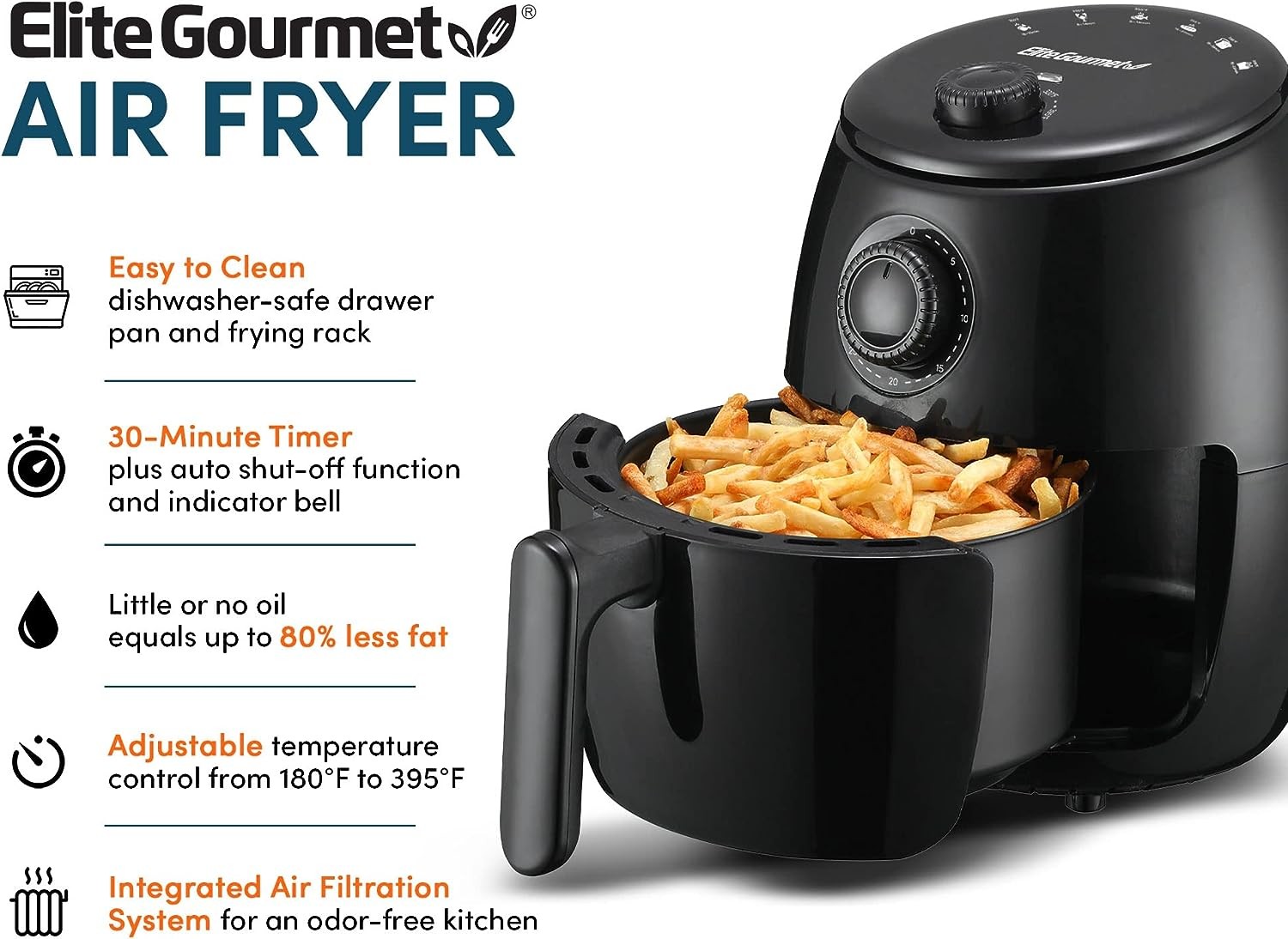 Elite Gourmet EAF-0201 Personal Compact Space Saving Electric Hot Air Fryer Oil-Less Healthy Cooker, Timer & Temperature Controls, 1000W, 2.1 Quart, Black