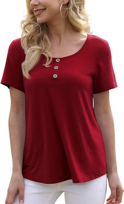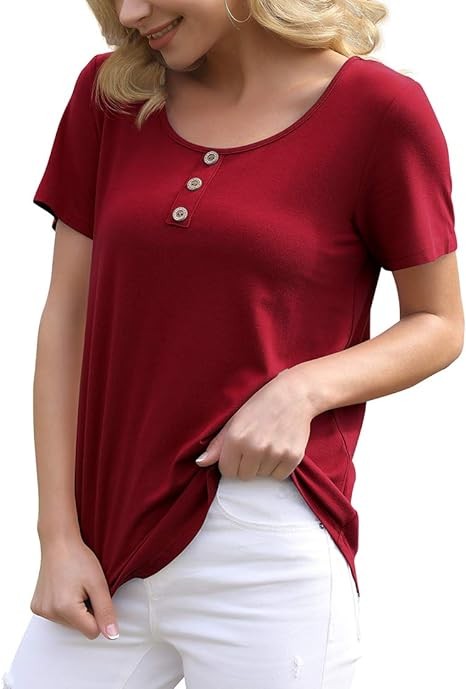 Fashion-Simple Design: button front design(Button Closure) make you look cute, slimmer & fashion. super chic and fashionable.Casual relax fit style, Classic round neckline, perfect tunic tops for summer every day look.