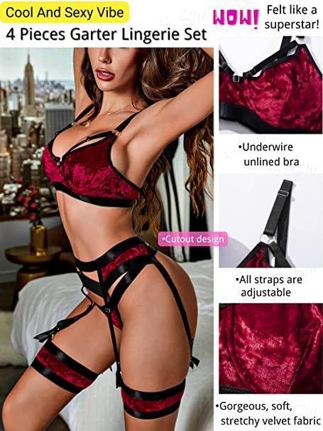 ✿Style: This v neck 4pc lingerie set with underwire cups can enhance femininity and outline sexy breast lines, making you more charming.