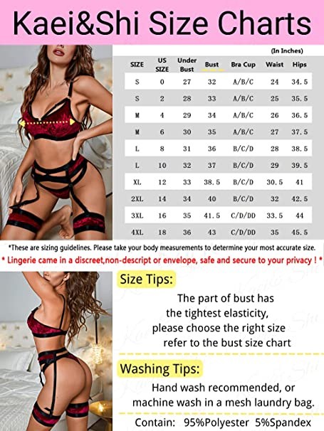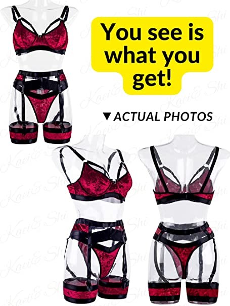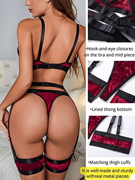 ✿Feature: This matching bra and panty set with belt and thigh bands is featured with strappy, high leg, metal ring, sheer mesh which shows your curve beautifully.
