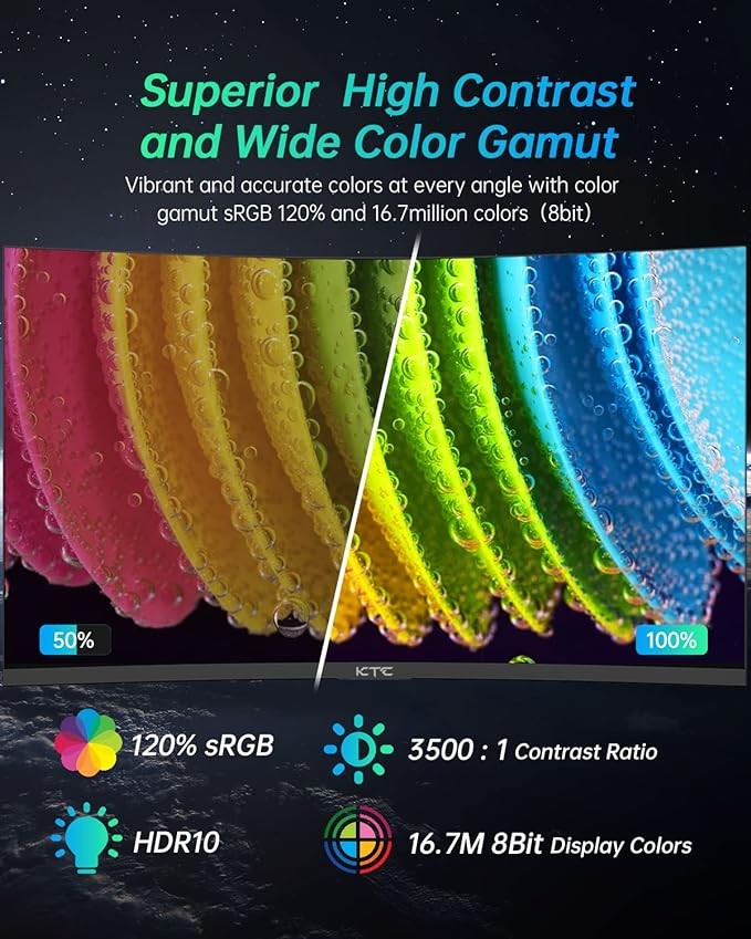 • 32 inch Wide Quad High Definition 2560 x 1440p, 1500R, Curved HVA Fast Panel, 120% sRGB, HDR10, 165Hz, 1ms(MPRT) Ultimate eSports Gaming Monitor. Experience the next innovation in PC gaming performance.