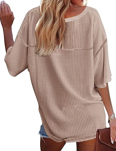 • The oversized shirts made of soft waffle kint fabric, you will feel comfortable when wearing it. Loose hem can be tied into a knot, create stylish look. Easily paired with jeans, skinny leggings, shorts and high boots. Also, you can show your collarbone with a nice necklace.