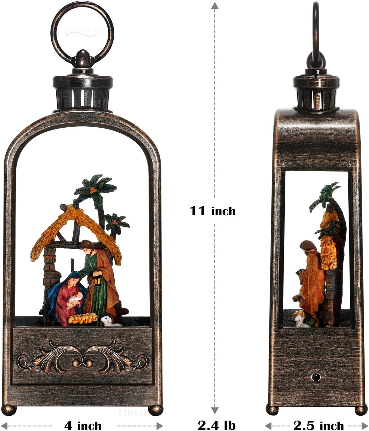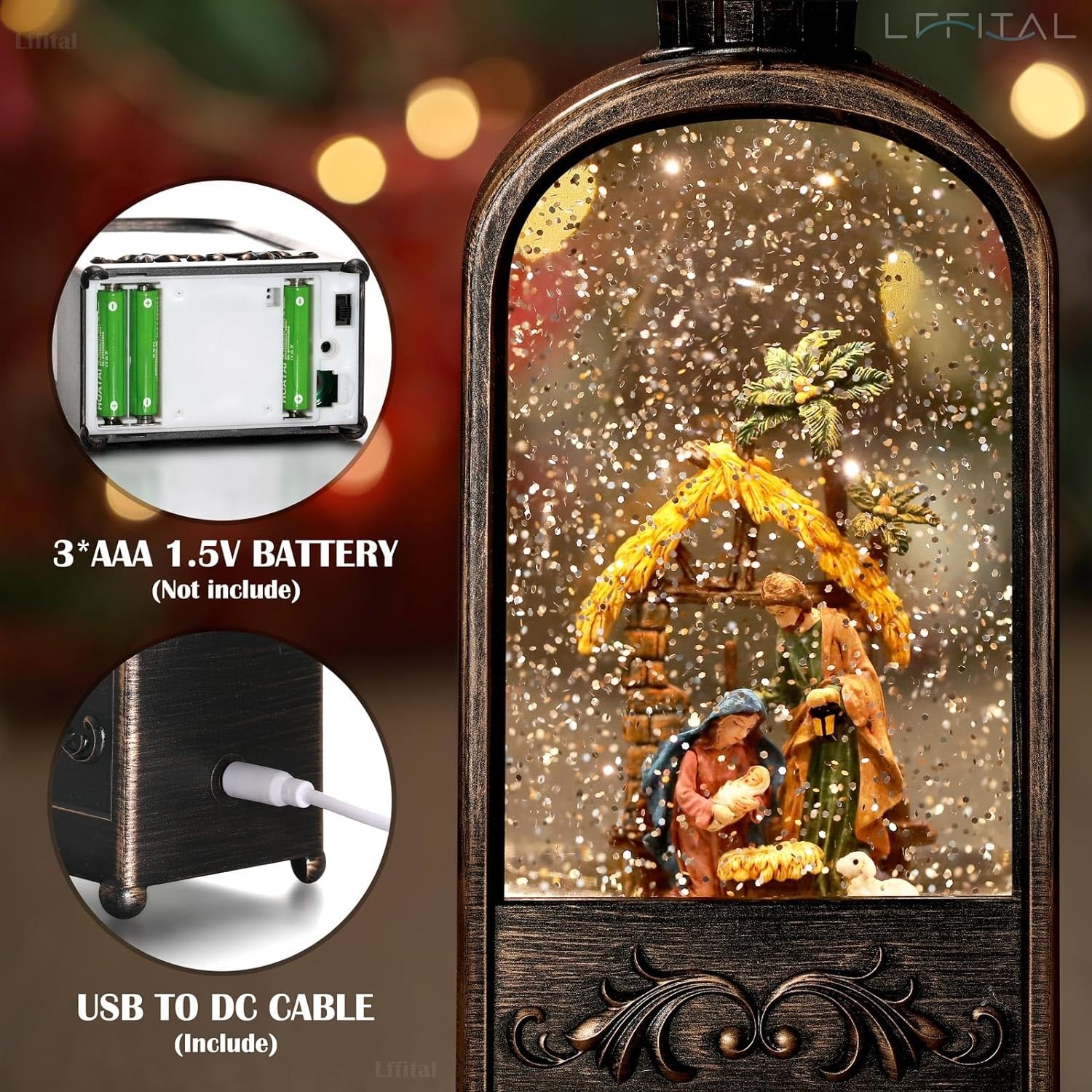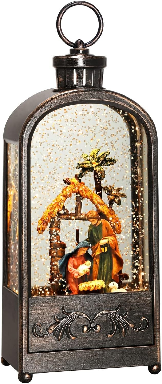 Snow Globe Lantern Christmas LED Nativity Jesus Snow Globe Glitters with Music Snowing Globe Lantern Festival Holiday Decoration Indoor Snow Lantern Battery Operated USB Powered 11 Inch