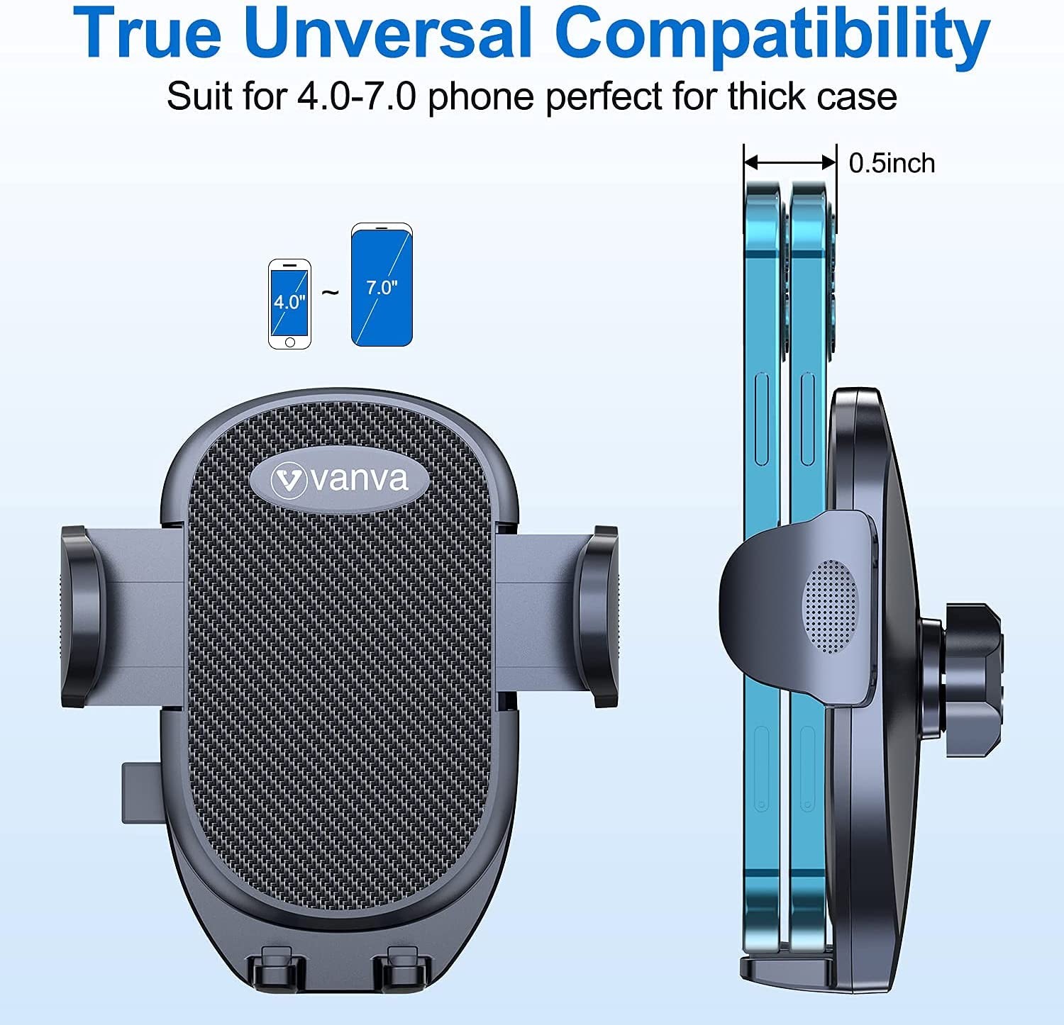 [ Hold Your Phone Stably & Drive without Distracting ] vanva phone mount holder has anti-slip rubber pads, stable support shelf, firm & scratch-free claw offer secure grip for your cellphone to ensure safer driving. With all above these, the stability increase 5 times, even can stable support big phones and thick cases.