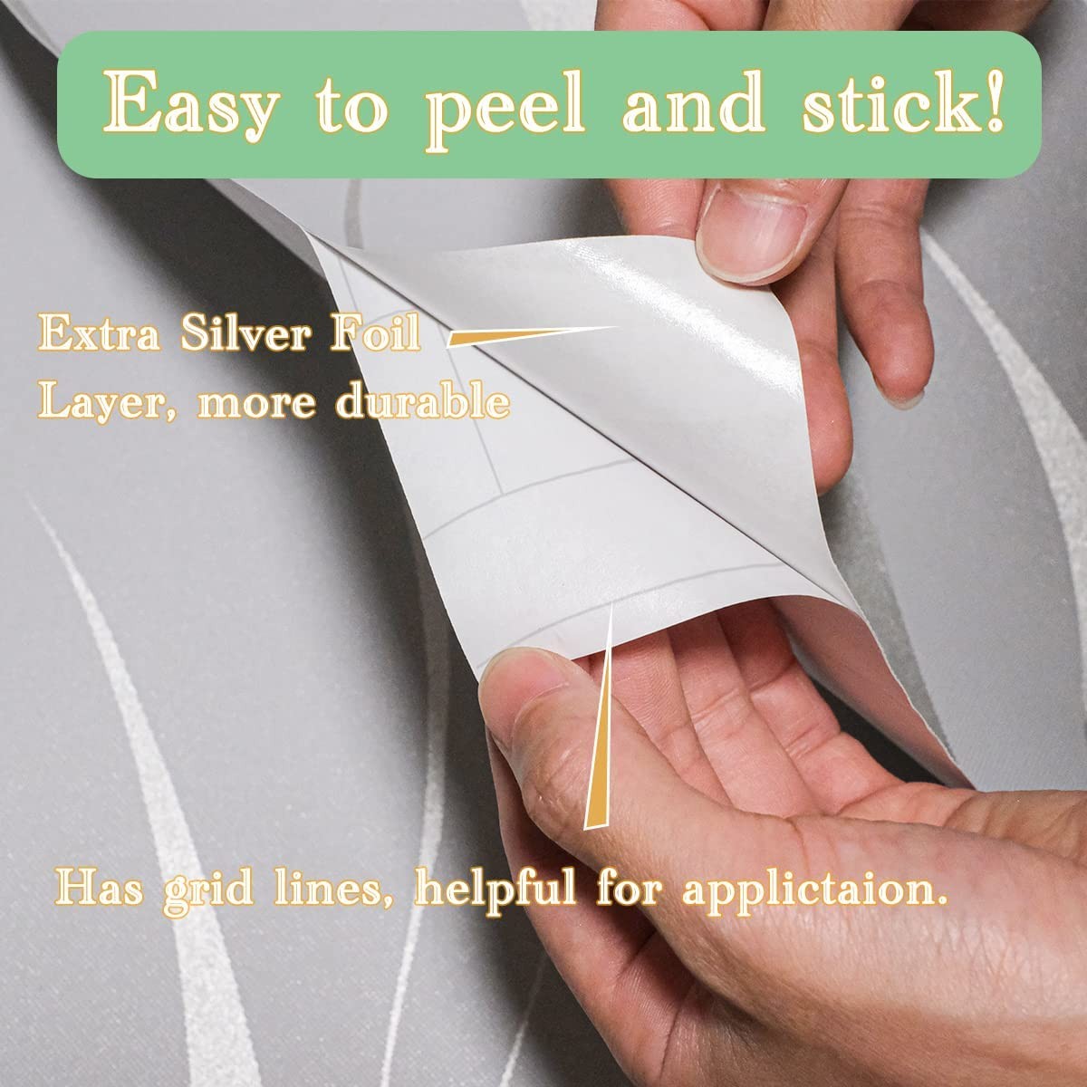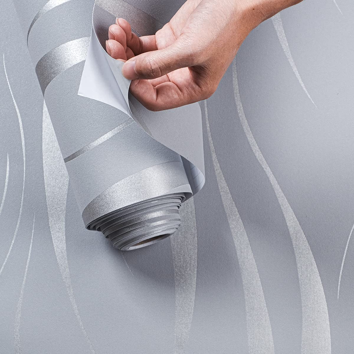 yuyiqi Peel and Stick Wallpaper, Length 20.8" Width 393" Per Roll, Non-Woven 3D Modern Print Embossed Stripe Fashion Wallpapers for Livingroom, Bedroom, Kitchen and Bathroom, Silver Grey