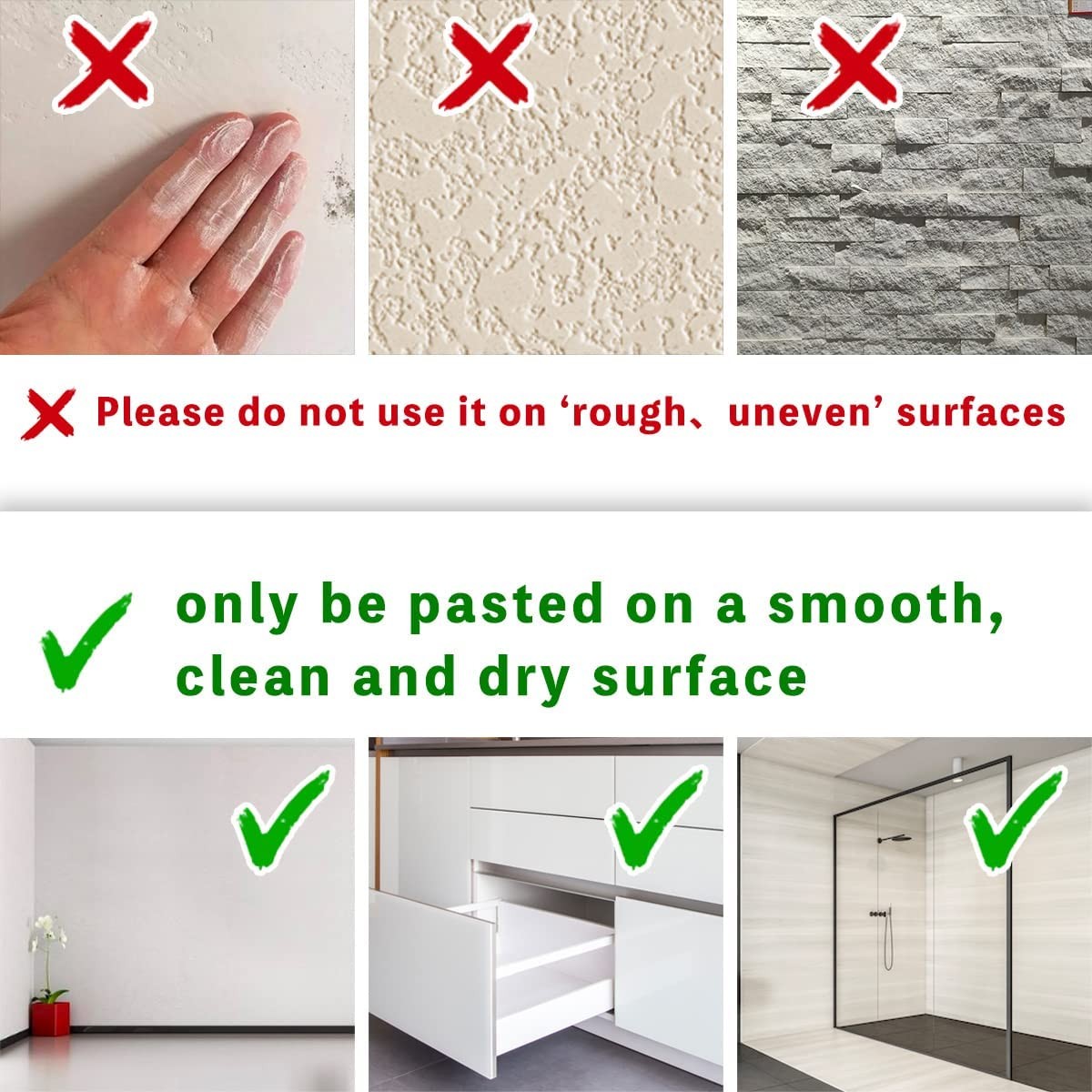 Peel and stick to apply, pull up to remove, is safe for walls and leaves no sticky residue behind, easy to use. But you need to ensure a smooth surface, Not suitable for dirty or rough surface.